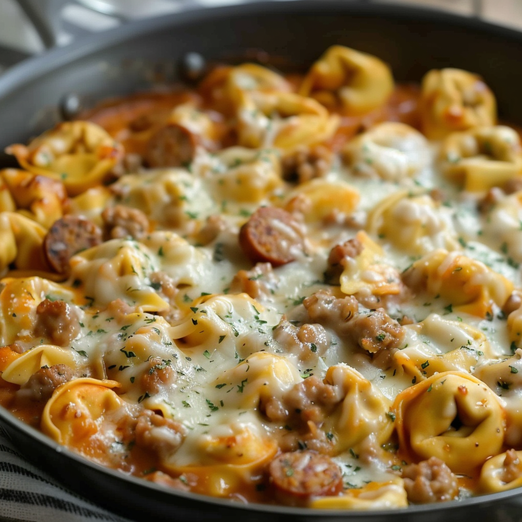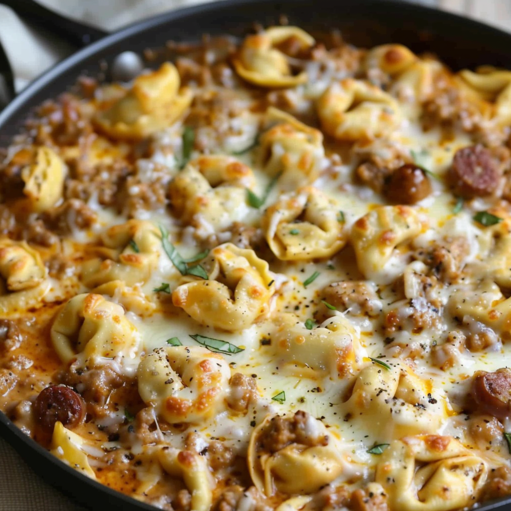 Baked Cheese Tortellini with Italian Sausage Creamy Pasta Casserole