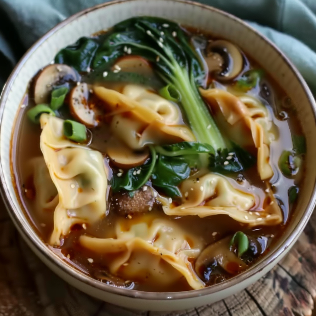 In many Asian households, dumplings like jiaozi or potstickers are staples, often enjoyed during holidays or family gatherings. This soup is a modern twist on that tradition, combining the satisfying chew of potstickers with the depth of a soy and mushroom-based broth. You’ll find this dish offers the umami richness typical of East Asian cooking, especially when using ingredients like shiitake mushrooms, soy sauce, and sesame oil—common staples in a well-stocked Asian pantry. Learn more about the cultural significance and variations of Chinese dumplings to better understand the dish’s roots.