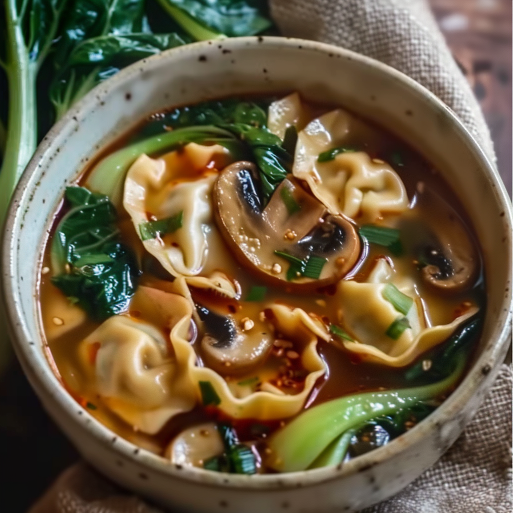 This Chinese-style potsticker soup is an easy, one-pot comfort food packed with bold Asian flavors. Featuring juicy dumplings, earthy mushrooms, crisp baby bok choy, and a fragrant soy-ginger broth, it comes together in under 30 minutes. Ideal for cozy nights or quick dinners, this satisfying soup delivers restaurant-quality flavor with minimal cleanup.