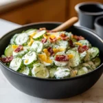 You’ve sliced, whisked, stirred, and chilled—and now you’ve got a snack bowl that’s creamy, crunchy, and completely satisfying. Whether you’re serving this as a refreshing afternoon bite, a crowd-pleasing side dish, or a light lunch, this Creamy Cucumber Salad Snack Bowl with Crumbled Bacon proves that simple ingredients really can create big flavor.