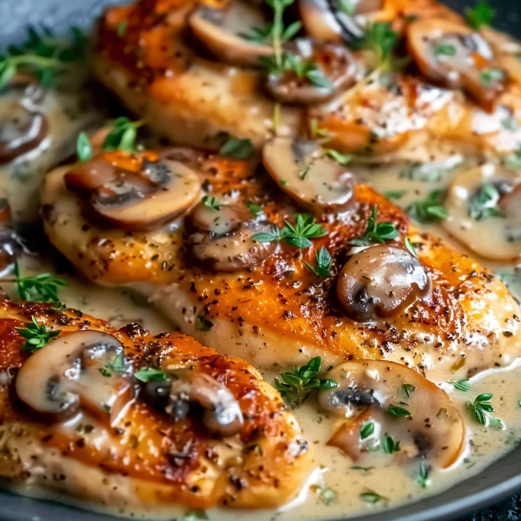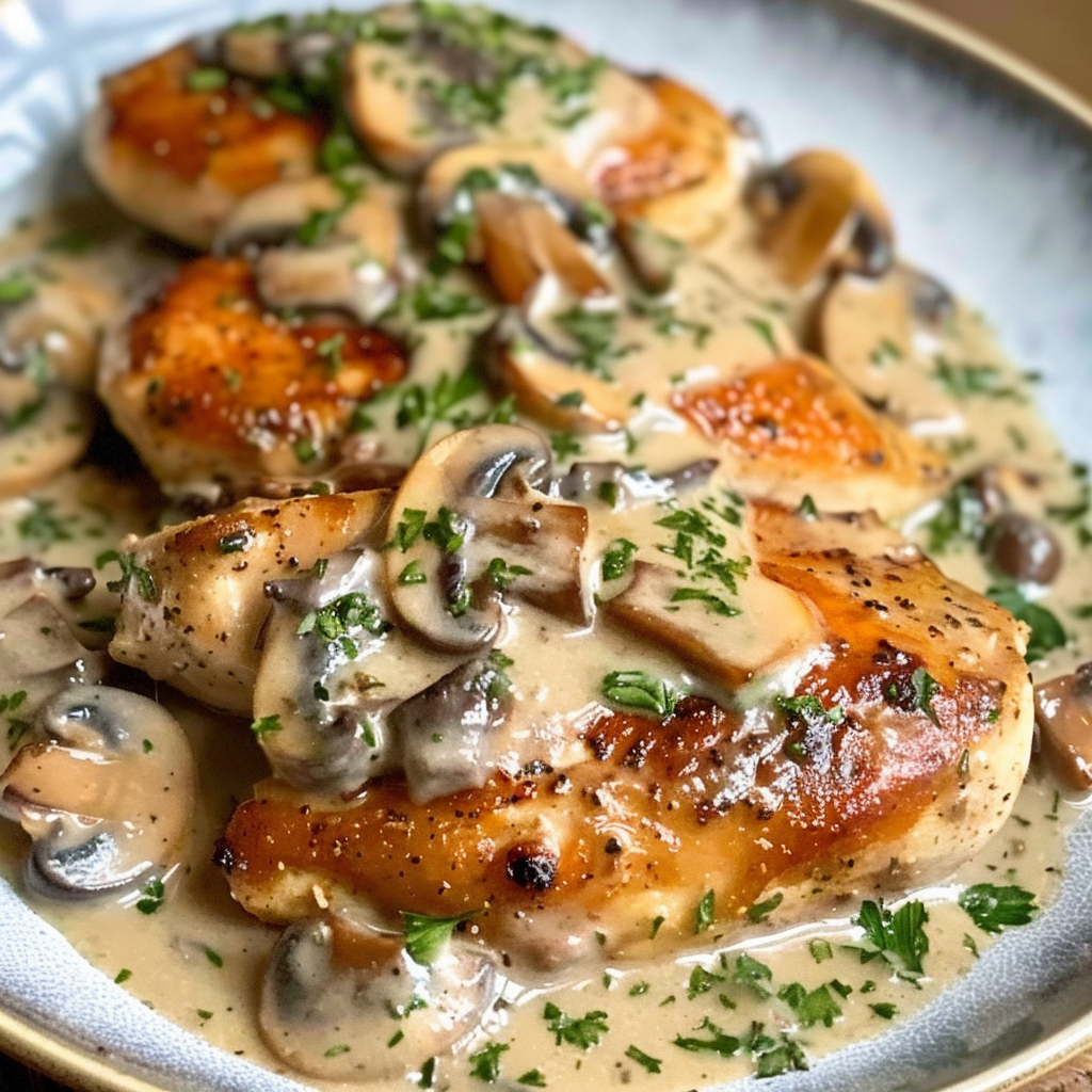 This Creamy Garlic Mushroom Chicken Skillet is a rich and comforting one-pan dish featuring tender, golden-seared chicken breasts simmered in a velvety garlic Parmesan cream sauce with perfectly sautéed mushrooms. Quick to prepare and made with everyday ingredients, this meal is ideal for busy weeknights or special dinners alike. Serve it over pasta, rice, or veggies for a complete and satisfying meal that’s as easy as it is elegant.