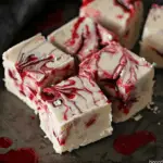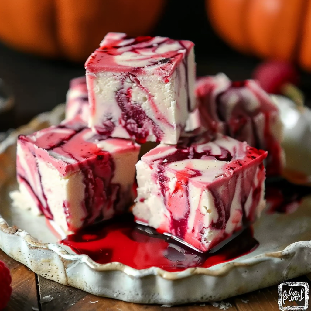 Assemble the fudge 1–3 days before your event. This allows the layers to firm up and the “blood” raspberry center to settle.