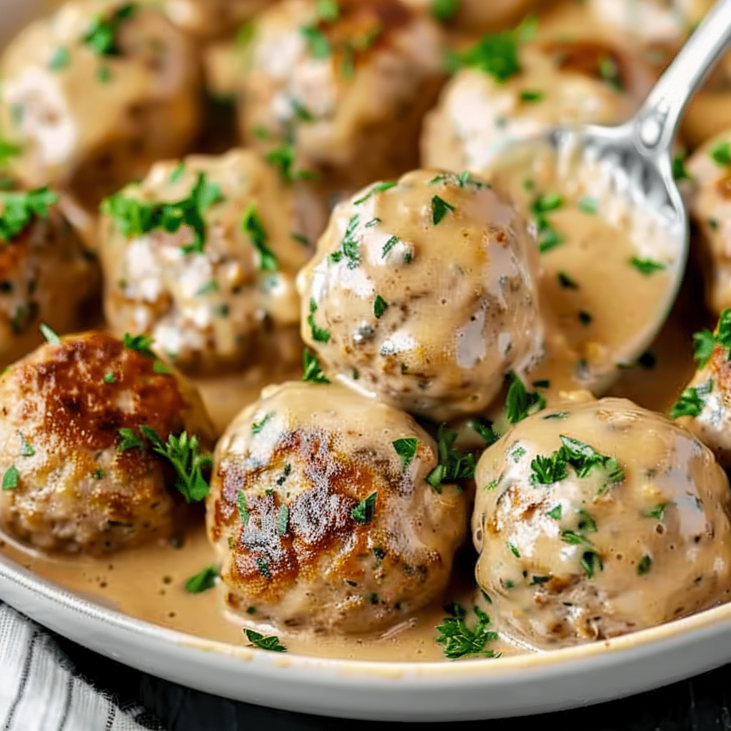 Reheating: Reheat gently in a skillet over low to medium heat, adding a splash of beef broth or cream if the gravy has thickened too much. Avoid microwaving, as it can cause the meatballs to dry out or the sauce to separate.