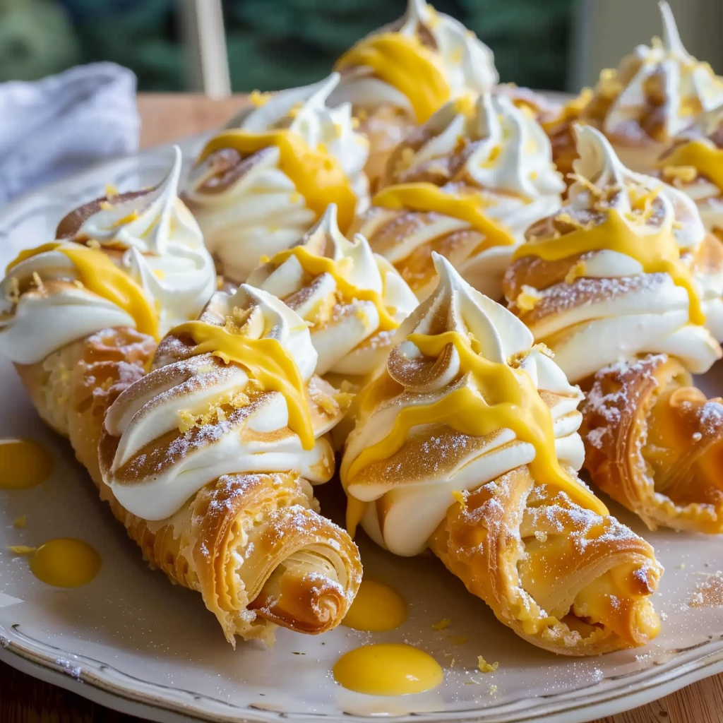Lemon meringue pie cannolis are a creative fusion of two beloved desserts: the iconic Italian cannoli and the timeless American lemon meringue pie. This hybrid dish takes the crunchy, tube-shaped shell of a cannoli and fills it with a rich, lemon mascarpone cream, topped with fluffy, lightly toasted meringue. The result is a refreshing, no-bake dessert perfect for warm weather entertaining.