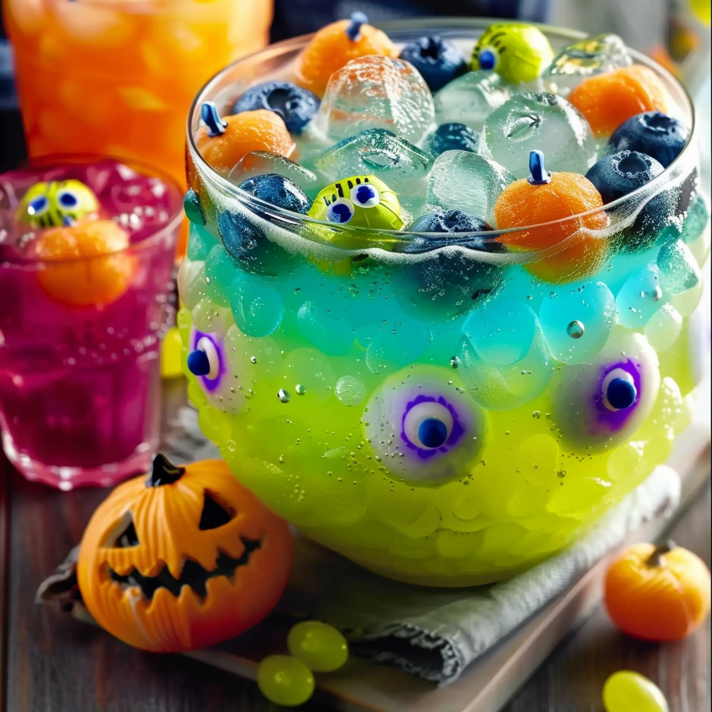 Chill Without Watering Down: Instead of traditional ice, freeze extra pineapple juice or green sports drink in silicone molds shaped like skulls, pumpkins, or eyeballs. These decorative cubes will keep the punch cold without diluting the flavor.