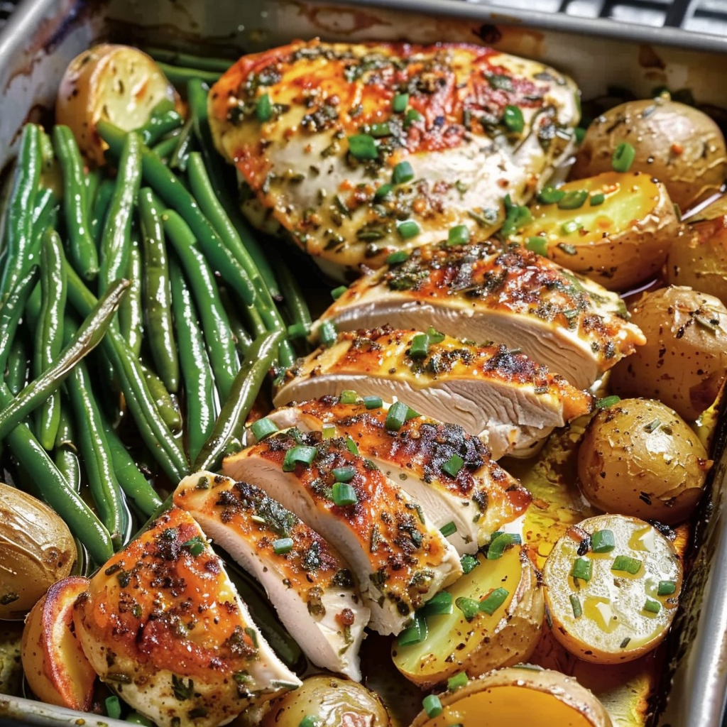 This garlic herb roasted chicken and veggies sheet pan dinner is a flavorful, one-pan meal that brings together juicy chicken, crispy baby potatoes, and tender green beans—all seasoned with olive oil, garlic, rosemary, and thyme. It’s the perfect no-fuss recipe for busy weeknights, meal prepping, or anytime you want a comforting and nutritious homemade dinner without the mess.