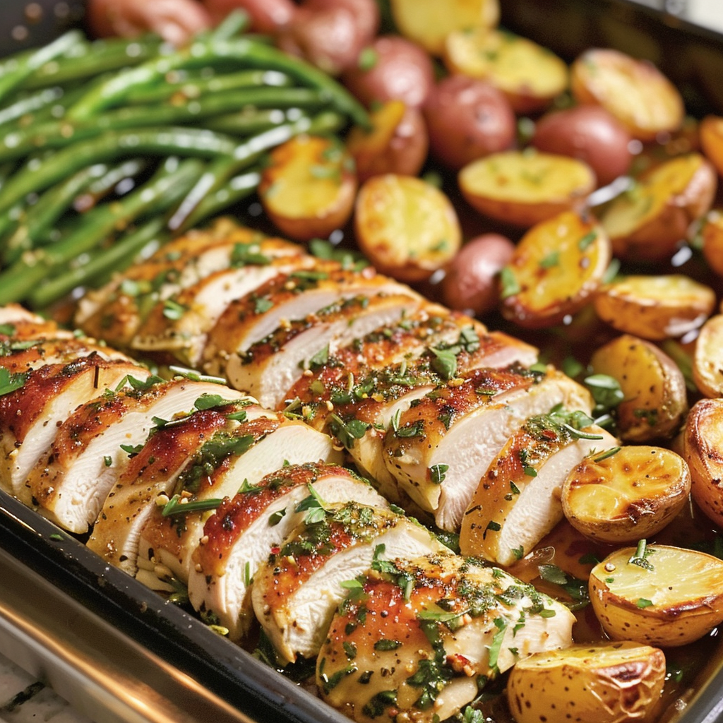 One-Pan Herb Roasted Chicken with Baby Potatoes and Green Bean