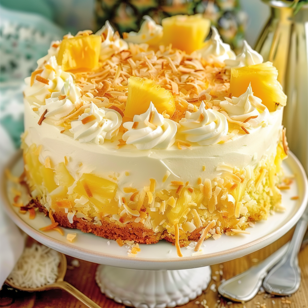 These three ingredients—coconut, pineapple, and rum—are what make Pina Colada Cake more than just another tropical dessert. Together, they recreate the iconic cocktail in a format that’s perfect for slicing and sharing.