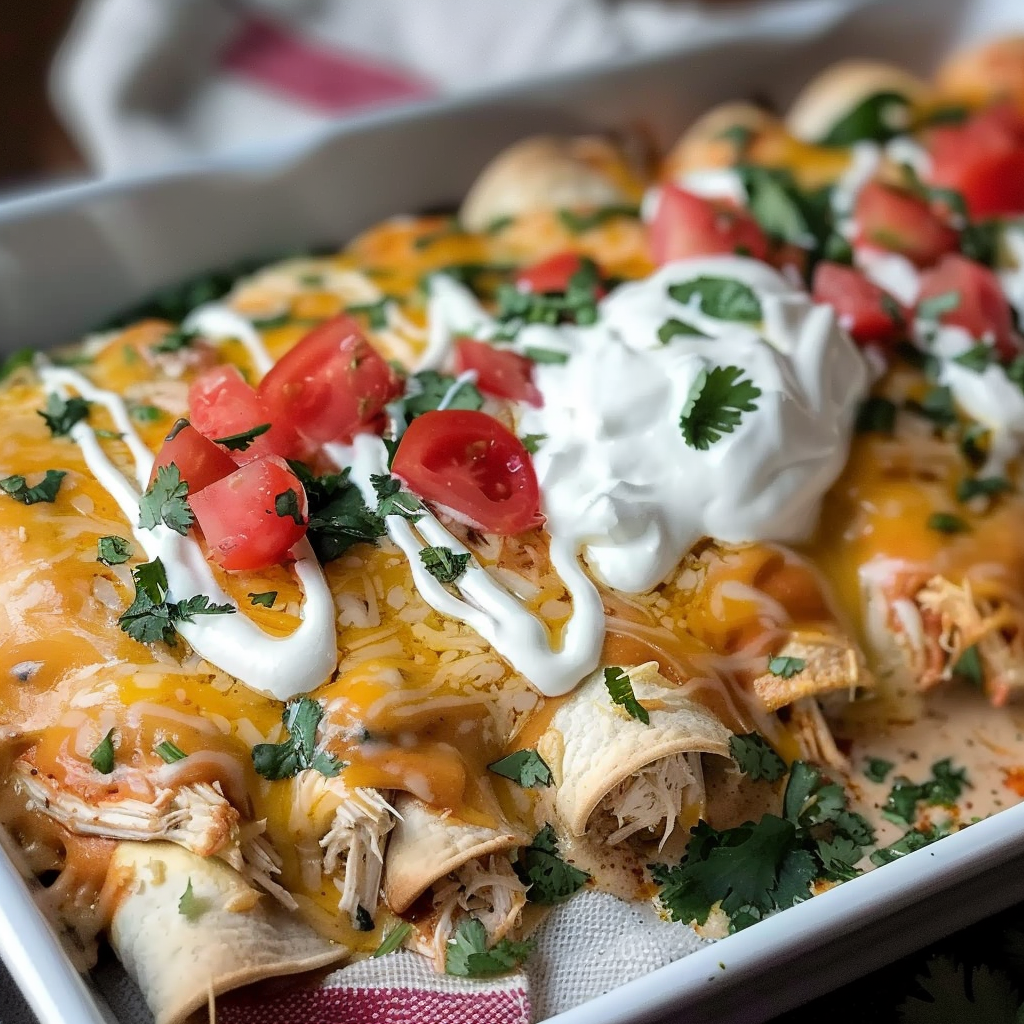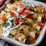 This version brings together the richness of queso dip, the bold flavor of diced tomatoes with green chilies, and the heartiness of chicken into a casserole that’s golden and gooey after just 30 minutes in the oven. Unlike traditional enchiladas that rely solely on red sauce, this recipe incorporates a luscious, sour cream-based white sauce for extra indulgence. This twist makes it the ultimate comfort food with a Mexican flair.